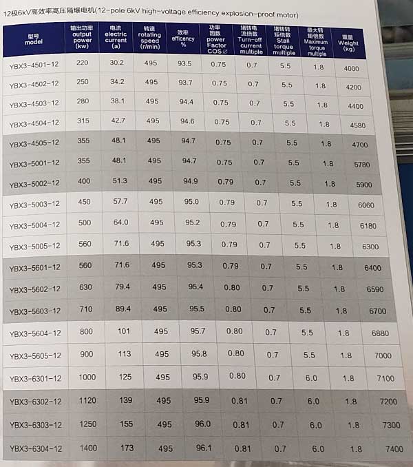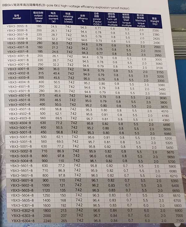 YBX3系列高壓隔爆型三相異步電動(dòng)機(jī)參數(shù)表