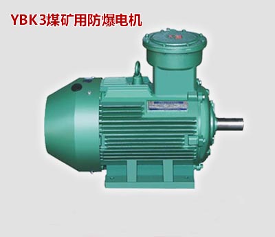 YBK3防爆電機(jī)用作煤礦井用(采掘面以下用),電動機(jī)的隔爆結(jié)構(gòu)為ExdI Mb。防爆標(biāo)志為ExdI Mb適用于含有瓦斯或煤塵的煤礦井下采掘工作面。本系列電動機(jī)為鼠籠式隔爆型三相異步電動機(jī),外殼防護(hù)等級為IP55,冷卻方式為IC411全封閉自扇冷式。